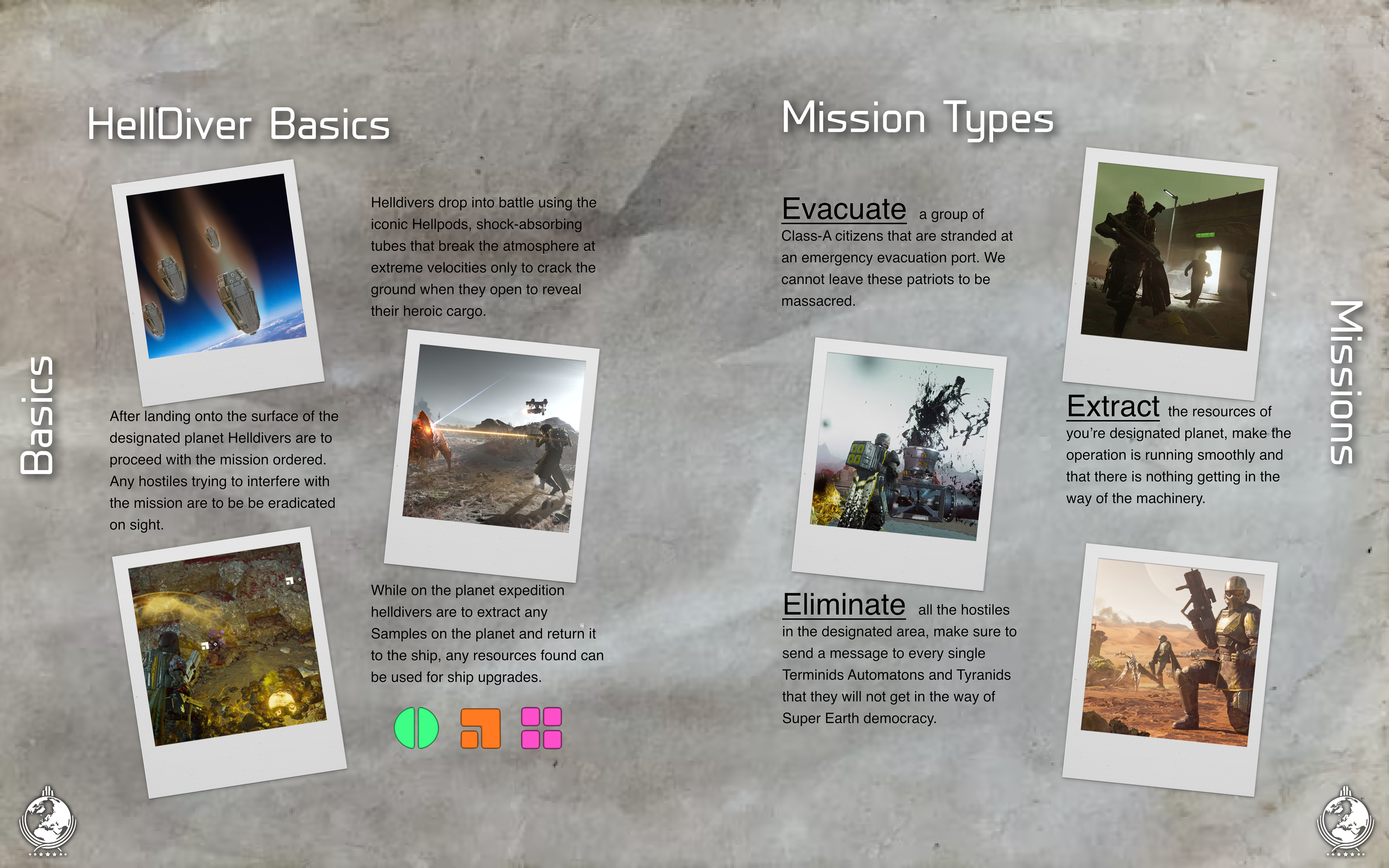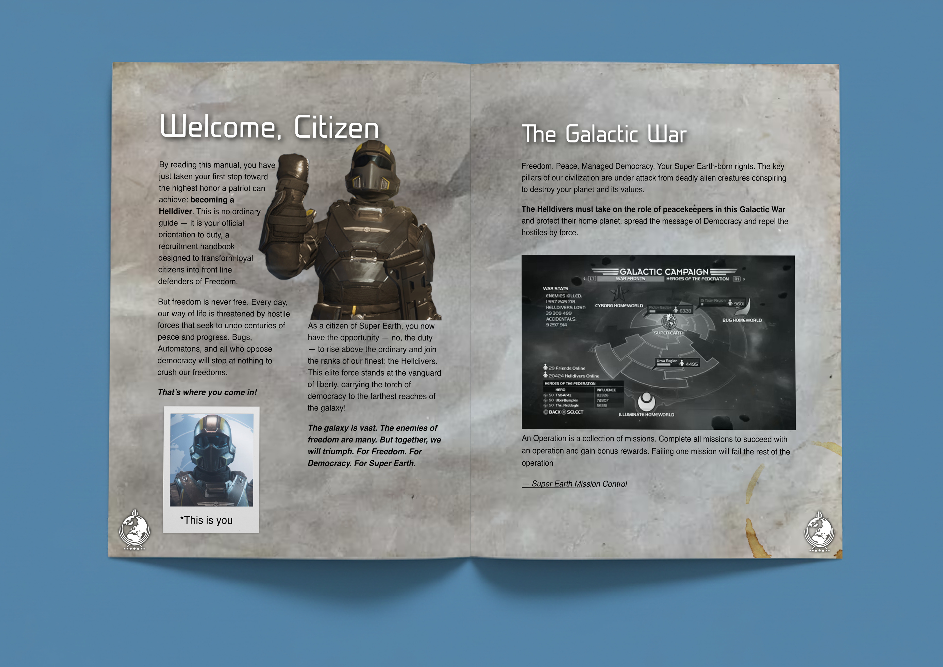 Brochure based on the world of Helldivers, this was mainly a guide on all the basics world building and lore along with helpful tips for new players interested in diving in.