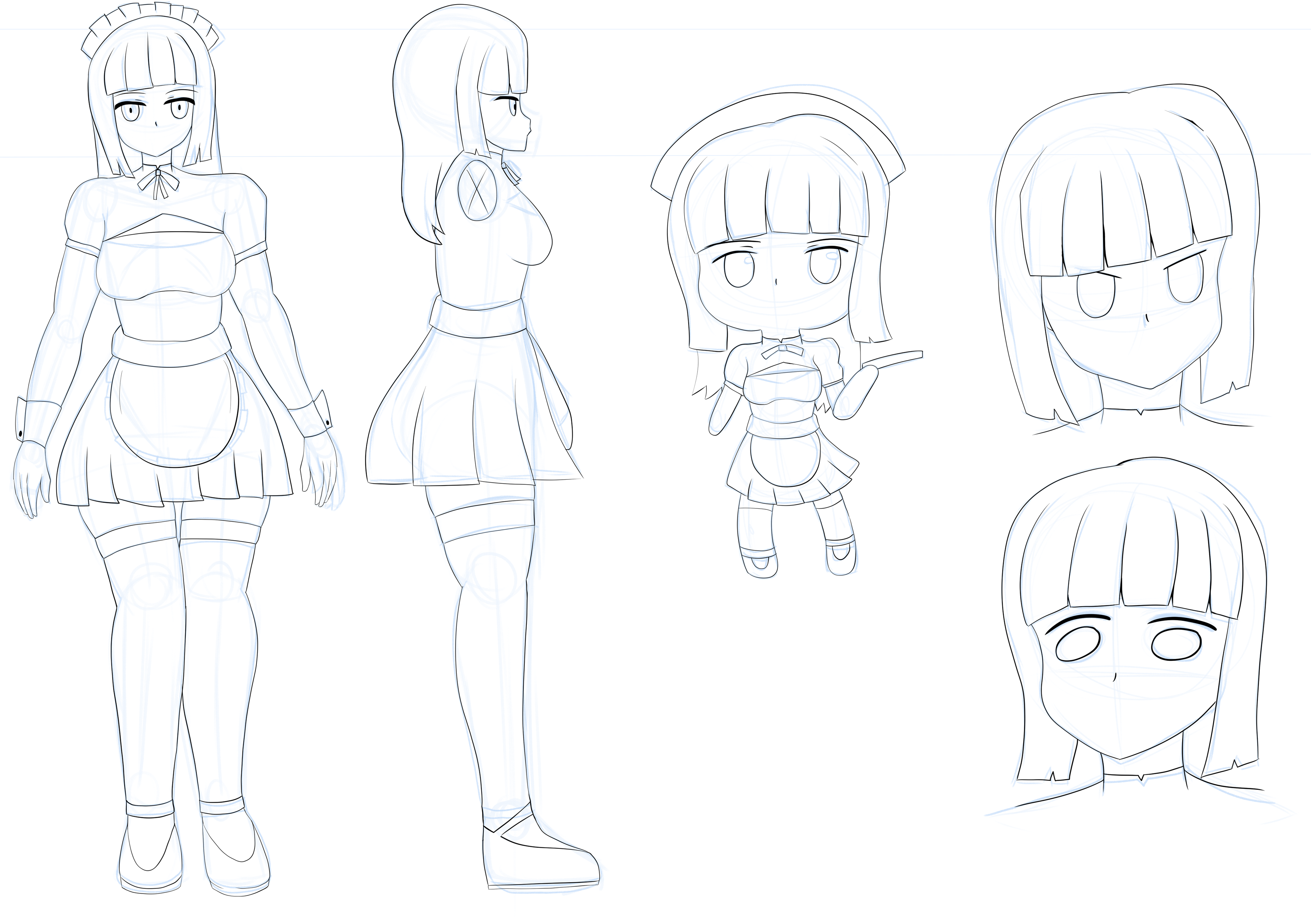 When beginning a sketch or illustrated piece, I start by blocking out the character with simple shapes to establish pose, position, and perspective. From there, I refine the drawing—either developing a clean sketch or moving directly into the final line work, depending on how solid the initial rough is.