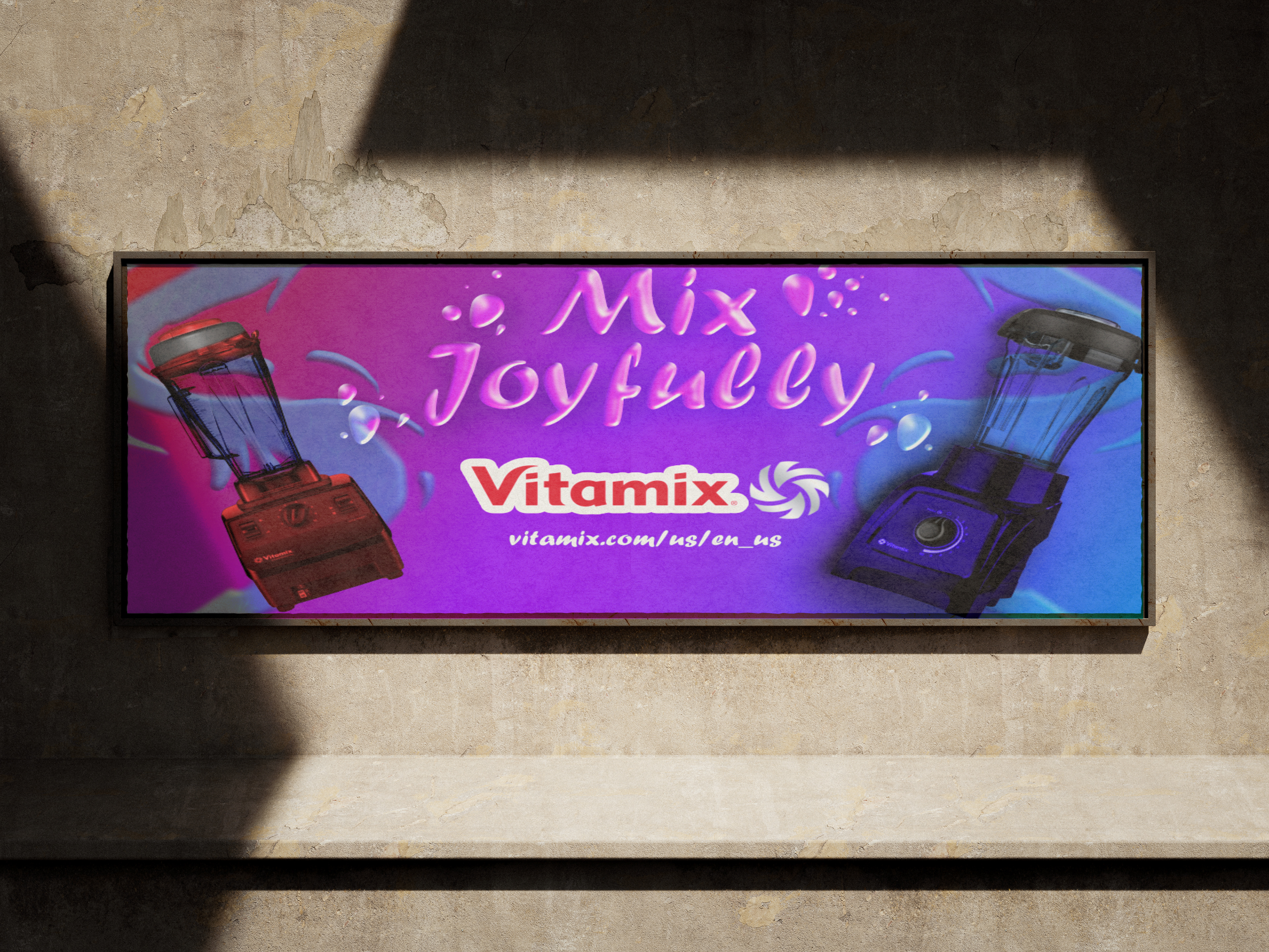 Recreated the slogan for the brand Vitamix adding a thicker outline around the their logo and added a bit of a bubblelike deign around for the letters of "Mix Joyfully"
